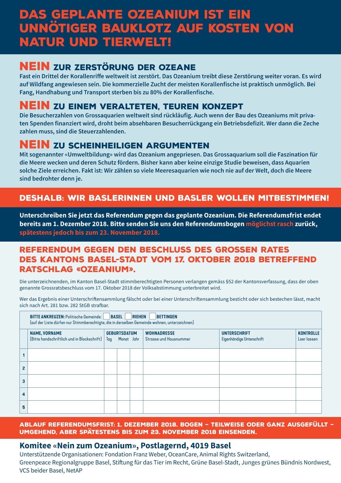 Ja: Komitee «Unser Ozeanium», Gewerbeverband, HKBB Nein: Umwelt- und Tierschutzorganisationen |