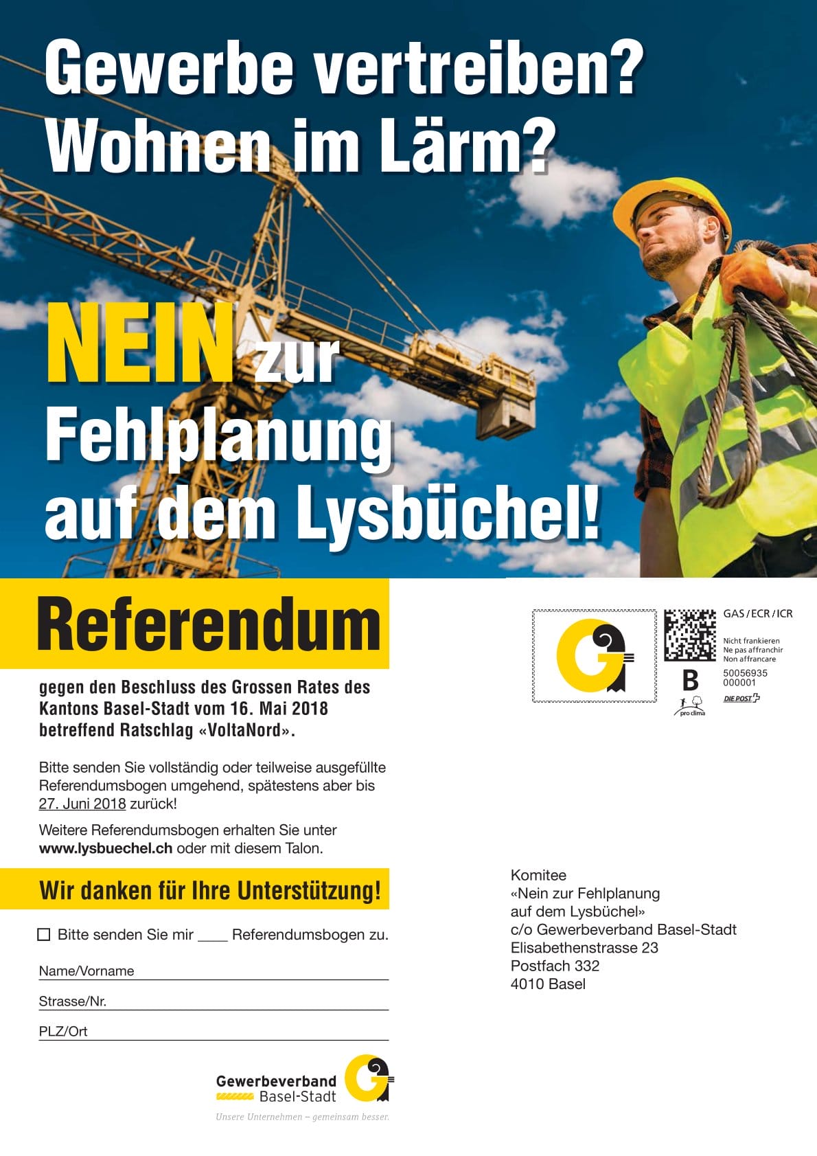 | Beschreibung der Vorlage | Der Grossratsbeschluss betraf den Bebauungsplan für das Gewerbeareal VoltaNord (Lysbüchel), das nur noch schwach genutzt wurde. Die Grundeigentümer, die SBB und die Bürgergemeinde Basel, strebten eine Weiterentwicklung des Quartiers St. Johann an. Der Bebauungsplan ermöglichte 2000 bis 3000 Arbeitsplätze (bisher 500) und neuen Wohnraum für 1300 bis 1900 Personen. Für die Gegnerschaft führte der Bebauungsplan zu einer weiteren Vertreibung des Gewerbes aus der Stadt, und durch die mangelhafte Trennung von Wohnen und emissionsstarkem Gewerbe seien Nutzungskonflikte vorprogrammiert. |