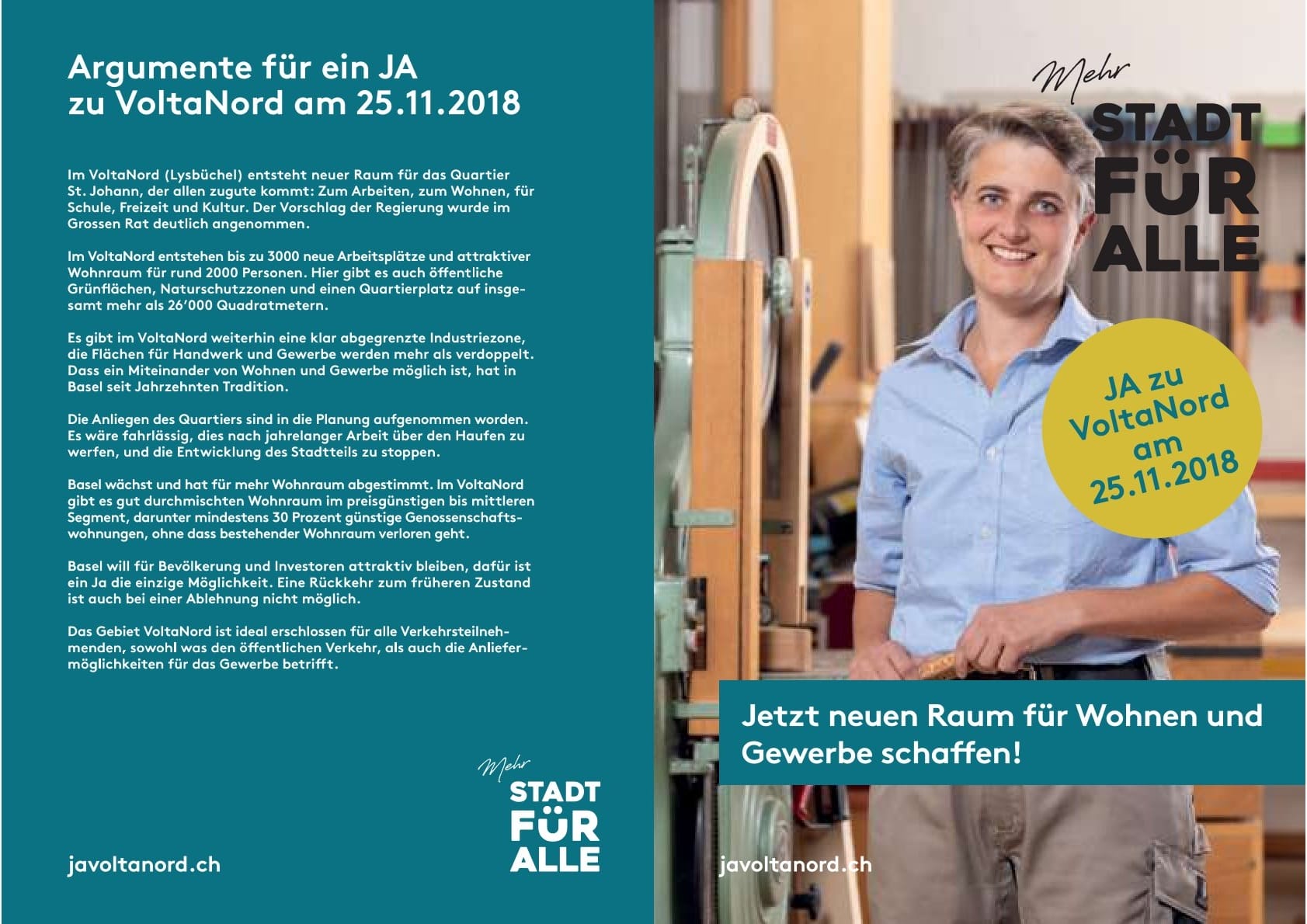 Ja: Komitee «Stadt für alle – Ja zu Volta Nord», HKBB, WWF, Stiftung Habitat, Wohnbaugenossenschaften Nordwestschweiz Nein: Gewerbeverband, Arbeitgeberverband |