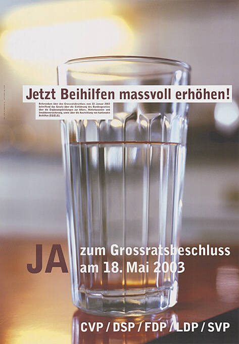| Beschreibung der Vorlage | Der Grossratsbeschluss bezweckte eine Erhöhung der kantonalen Beihilfen für AHV- und IV-Rentnerinnen und -Rentner mit bescheidenem Einkommen. Der Kanton bezahlte die Beihilfen zusätzlich zu den Ergänzungsleistungen (EL). Allein stehende Betagte und Behinderte erhielten neu 120 statt 92 Franken pro Monat für den Lebensbedarf. Verankert wurde auch das Recht auf ein verbilligtes U-Abo für Bezügerinnen und Bezüger von EL und Beihilfen. Die Gegnerschaft forderte eine viel stärkere und der Teuerung angepasste Erhöhung der Beihilfen. |