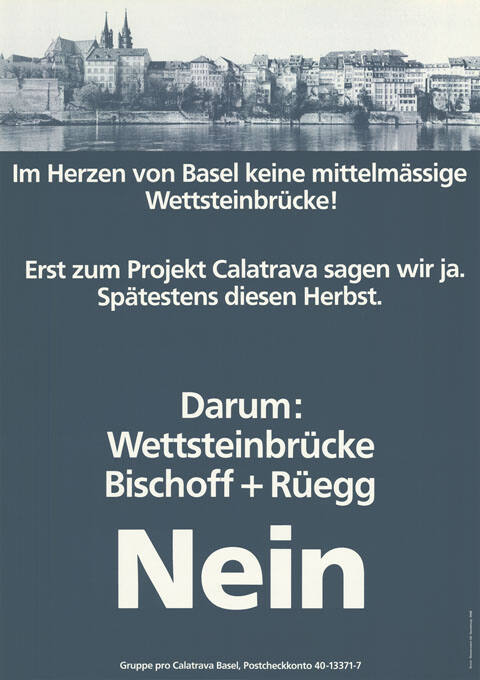 Ja: Komitee «Ja zur Brücke» (um Felix Rudolf von Rohr) Nein: «Gruppe pro Calatrava» (um Bernhard Christ), «Basel für Calatrava» (um Hans Brutschin); Heimatschutz; Künstler um Jean Tinguely |