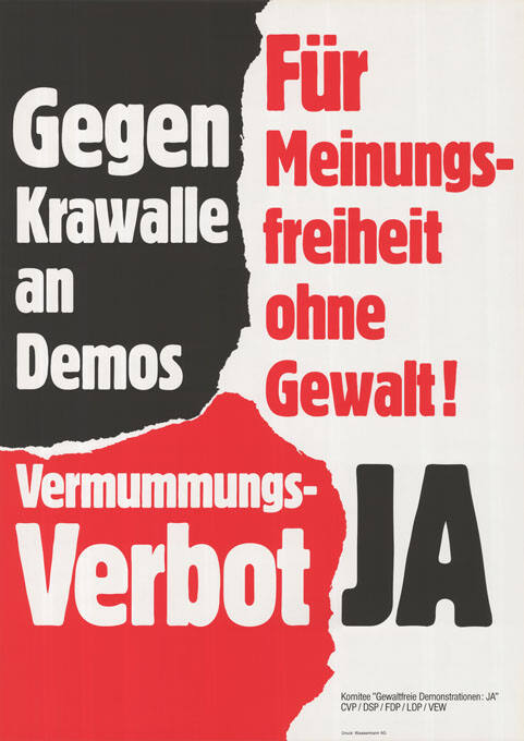 Ja: Komitee «Gewaltfreie Demonstrationen: JA» Nein: Komitee gegen das Vermummungsverbot, Demokratische JuristInnen, Frauen für den Frieden |