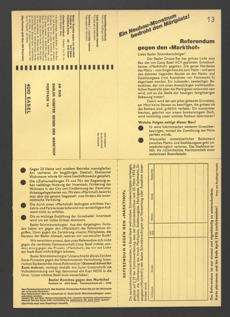 | Urheberschaft | Basler Komitee gegen den Markthof |